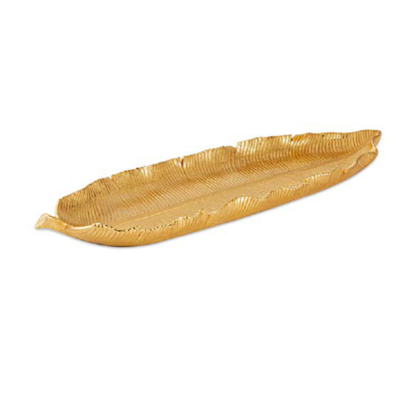 CENTRO DE MESA FORMATO DE FOLHA EM POLIRRESINA DOURADA